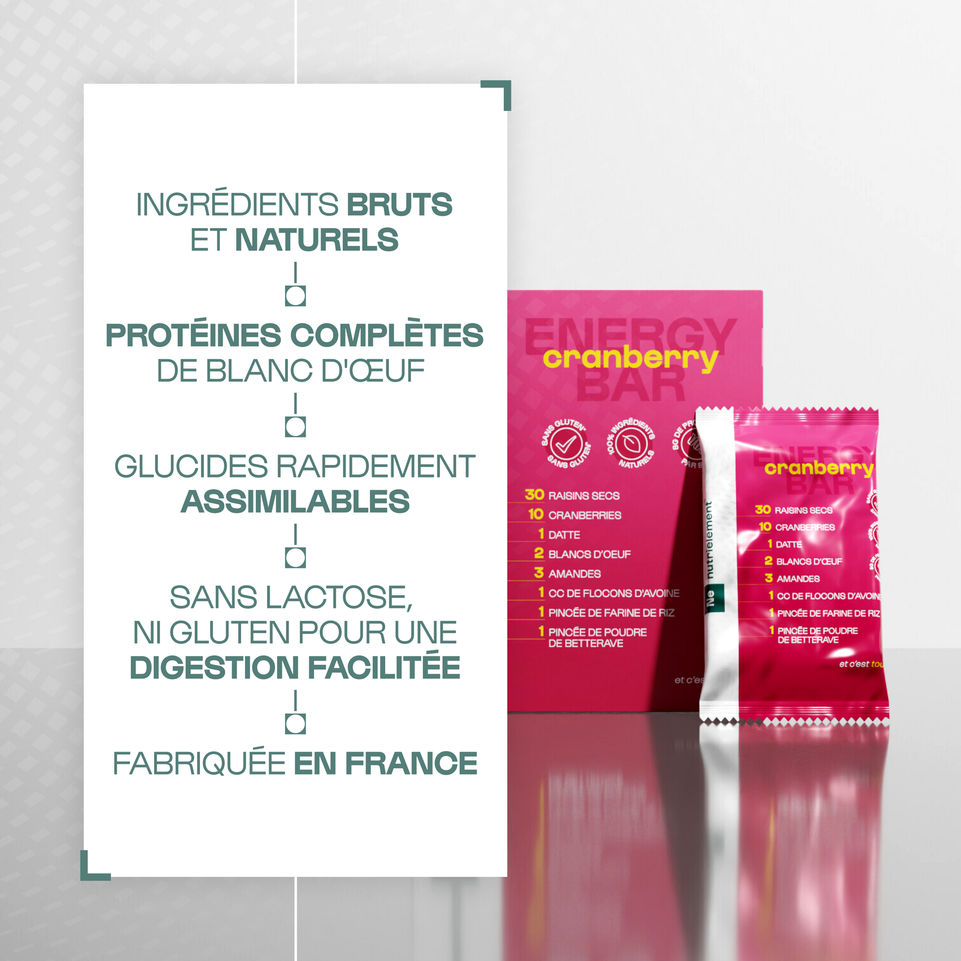 Pour recharger vos batteries à tout moment de la journée, avant, pendant ou après l’entraînement, les barres énergie Nutrimuscle allient naturalité et efficacité. Composées d’ingrédients bruts et gourmands, elles sont une source d’énergie saine et digeste.