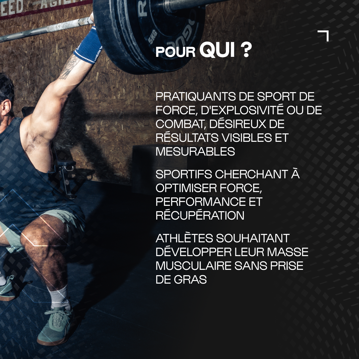Il convient également aux athlètes exigeants cherchant à maximiser leurs performances et leur récupération, ainsi qu’à ceux qui veulent stimuler la croissance musculaire sans prise de gras.